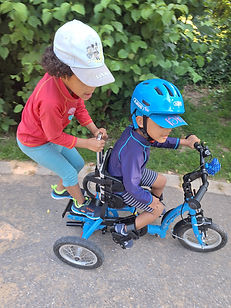 Zusammen sind wir stark - die Kinder lieben diese kurze Auszeiten mit dem Fahrrad/Dreirad. Liam genießt seine Zeit auf dem Dreirad, denn da kann er sich selbständig fortbewegen und einparken :)