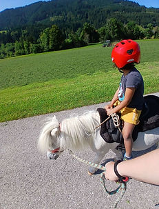 An ihrem 4. Geburtstag im Sommer 2024 machte Malou ihre ersten eigenen Erfahrungen mit Pferden. Als sie auf einem Pony reiten durfte, zeigte ihr Gesicht pure Freude und Stolz. Sie war überglücklich, endlich reiten zu dürfen.